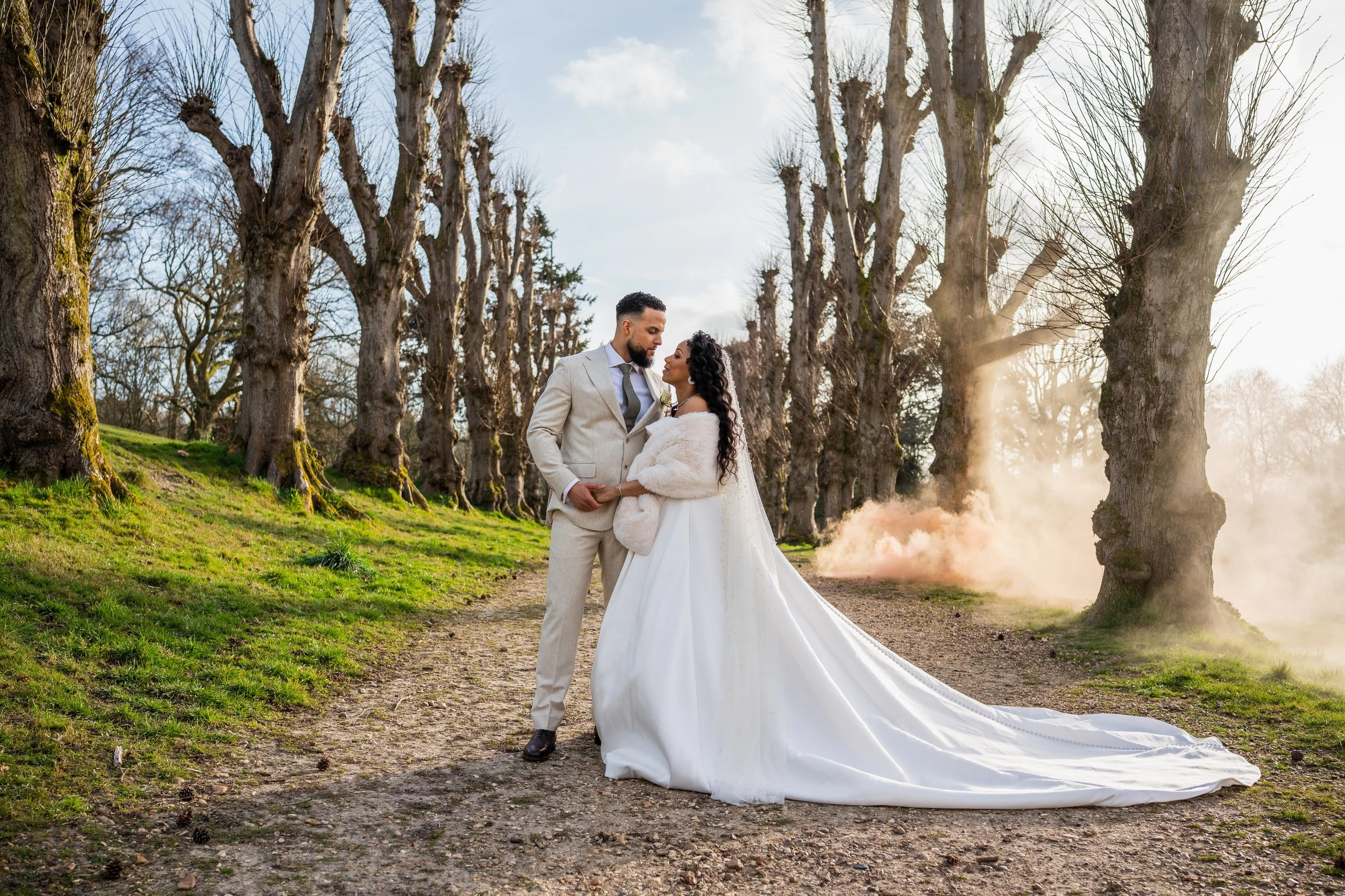 As the newlyweds Sophie and Denis stepped out of their beautiful ceremony at Highfield Castle in Bournemouth, they were met with a joyful parade of family and friends, tossing confetti into the air. In that perfect moment, I captured a spontaneous kiss – framed by the laughter, smiles, and celebrations of their loved ones.